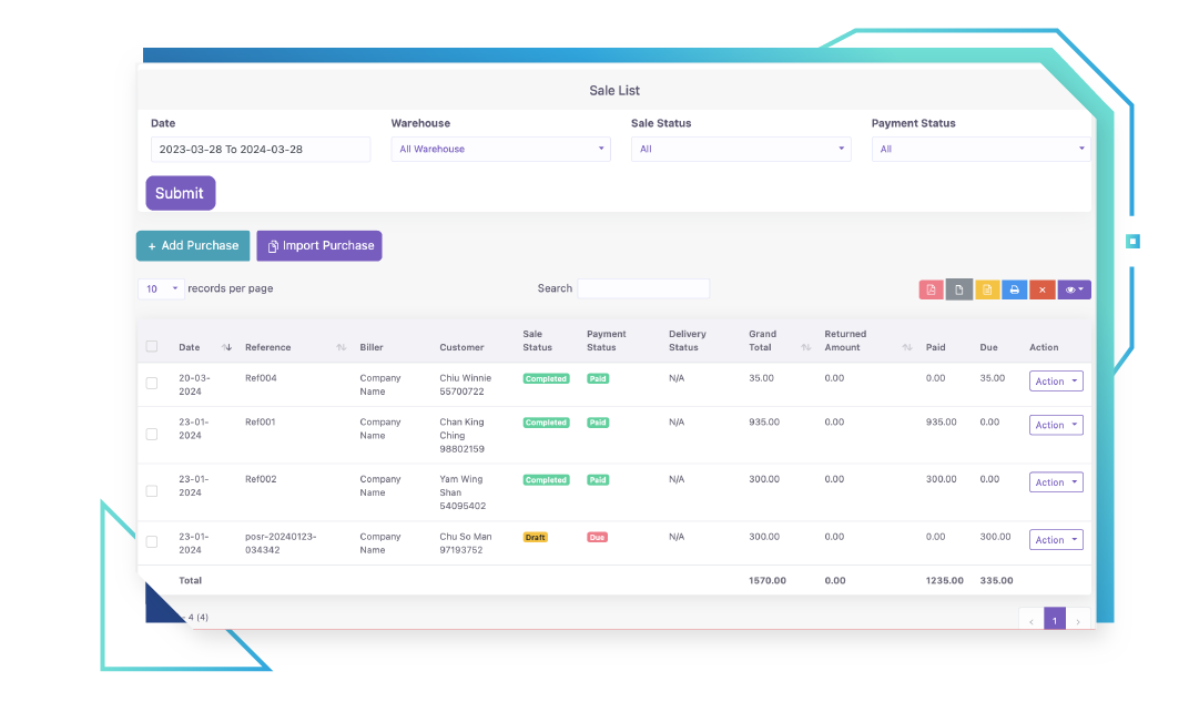 Inventory Management System with POS allows you to manage your inventory, sales, purchases, customers, invoices, payments, employees, accounting and much more. Update your stock information, make purchases and view sales information from anywhere anytime. Whether you are running a small business or a big enterprise – Our IMS with POS is the solution you need.